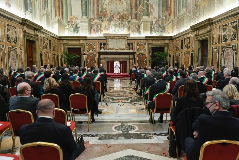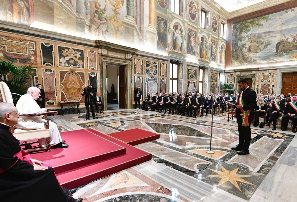Ringrazio il Presidente per le sue parole di saluto. Sono contento di accogliervi per un momento di riflessione sul vostro servizio per la difesa e la promozione del bene comune nelle città e nelle comunità che amministrate. Attraverso di voi, saluto i Sindaci di tutto il territorio nazionale, con grato apprezzamento, in particolare, per ciò che state facendo e che avete fatto in questi due anni di pandemia. La vostra presenza è stata determinante per incoraggiare le persone a continuare a guardare avanti. Siete stati punto di riferimento nel far rispettare normative a volte gravose, ma necessarie per la salute dei cittadini. Anzi, la vostra voce ha aiutato anche chi aveva responsabilità legislative a prendere decisioni tempestive per il bene di tutti. Grazie!