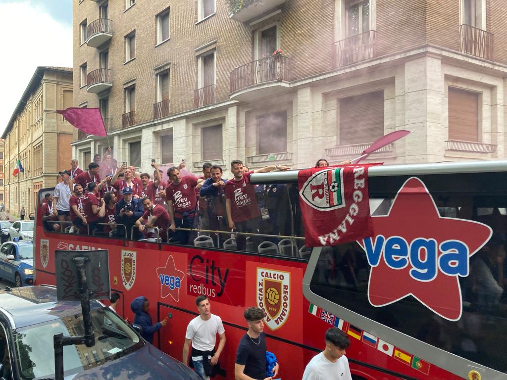 La festa della Reggiana promossa in serie B ha invaso le strade del centro storico di Reggio Emilia, dopo la partita al Mapei Stadium Città del Tricolore, terminata 2 a 2 con l’Imolese, anche se il risultato questa volta non conta. Dopo avere assistito all’ultimo match del campionato, migliaia di tifosi si sono ritrovati in centro storico, poco dopo le 18, per rendere omaggio alla squadra che ha vinto il suo girone conquistando la cadetteria (foto e video Glauco Bertani e Paola).