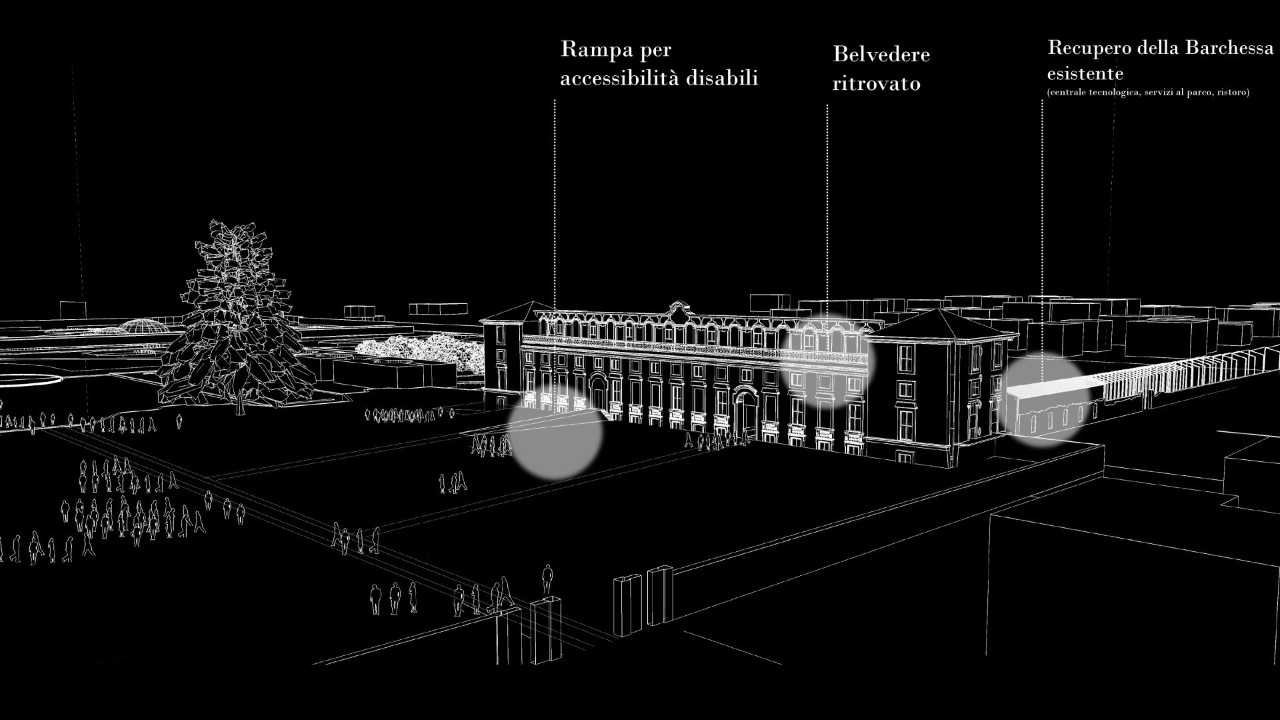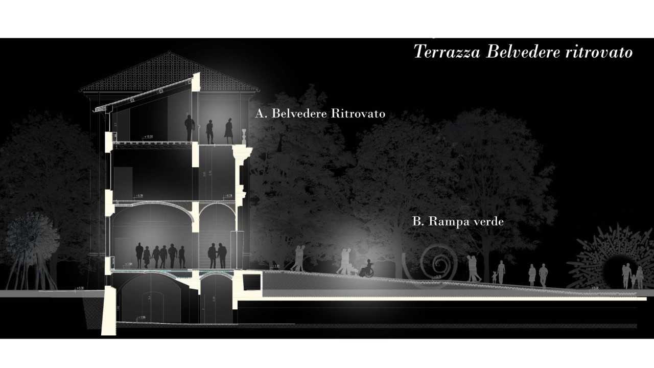 sarà riaperta la Terrazza Belvedere al secondo piano, con la necessaria demolizione di una copertura incongrua, non prevista nel progetto originale e installata in anni più recenti. Dalla Terrazza Belvedere si godrà di una bellissima visuale sul Parco e sulla campagna vicina;