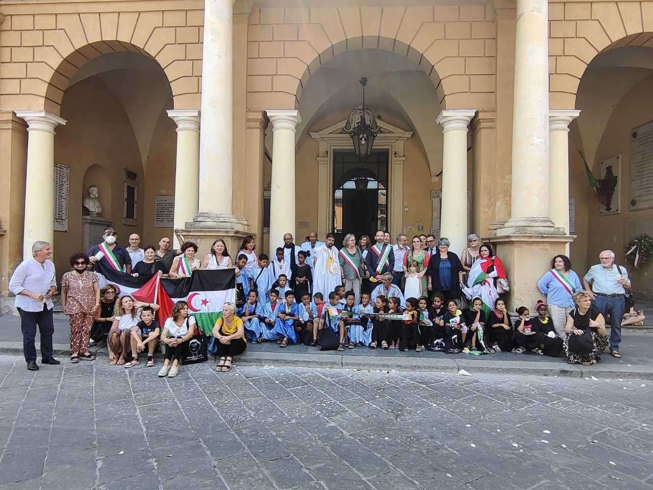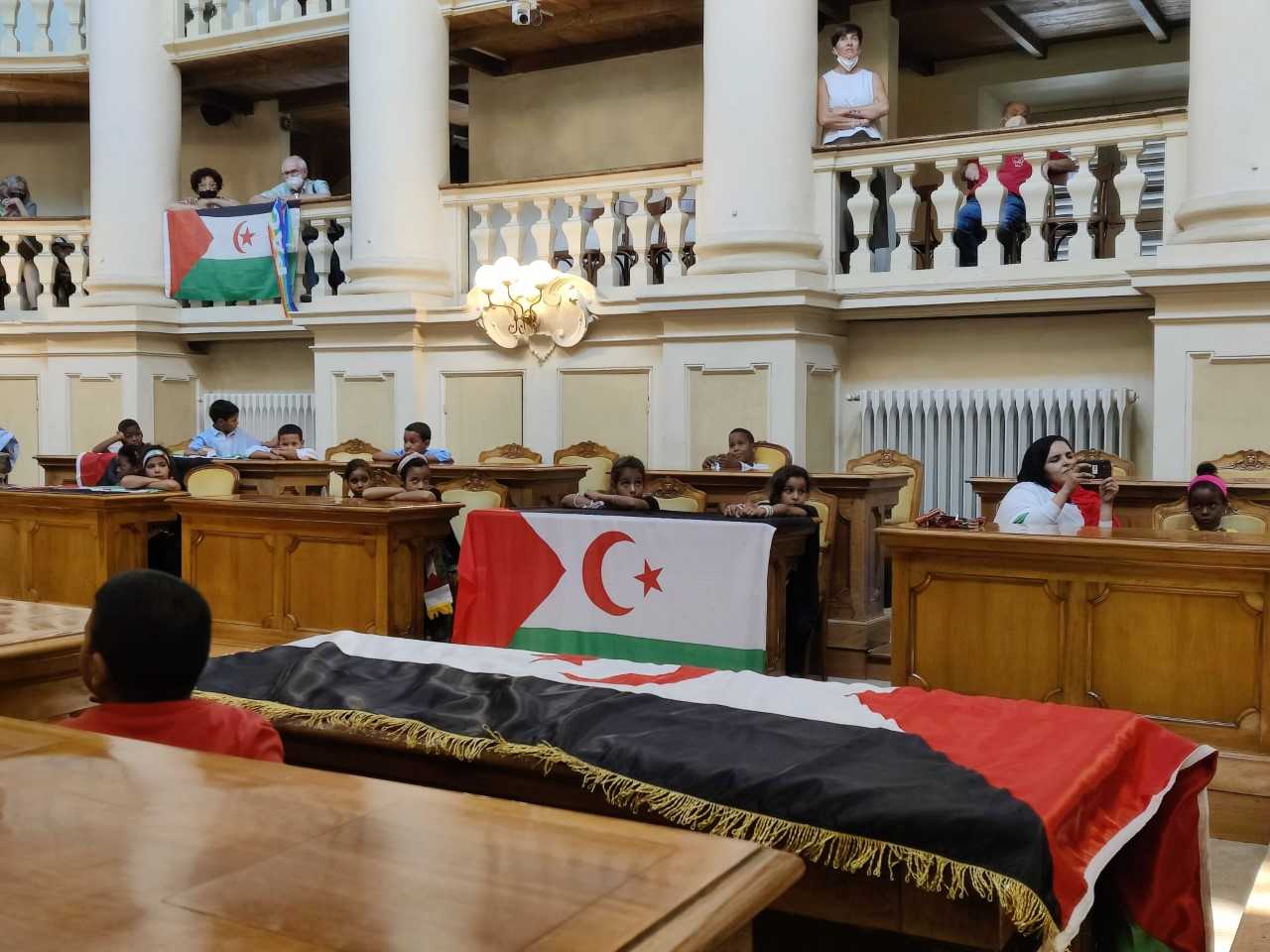 La Sala del Tricolore ha aperto sabato scorso le porte a 24 piccoli ambasciatori e piccole ambasciatrici di pace del Saharawi: un appuntamento di scambio, incontro e accoglienza promosso dall’associazione Jaima Sahrawi, che mancava da Reggio Emilia dal luglio 2019. Nel corso dell’incontro, promosso in collaborazione con il Comune, sono intervenuti il presidente del Consiglio comunale Matteo Iori, la presidente di Rete Saharawi e Jaima Sahrawi Caterina Lusuardi, il portavoce degli accompagnatori Mohamed Lebsir, il consigliere regionale Federico Amico, l’onorevole Antonella Incerti quale coordinatrice del gruppo interparlamentare “Amici del Popolo Saharawi” e la rappresentante del Fronte Polisario in Italia Fatima Mahfud.