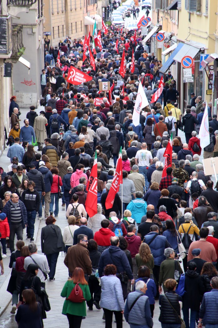 Dopo il ritrovo in viale Montegrappa, all’altezza dell’incrocio con via Emilia San Pietro, il corteo si è snodato lungo la via Emilia fino a piazza Gioberti, per poi procedere in via Mazzini, corso Cairoli e piazza della Vittoria. Qui, dopo la deposizione di una corona di fiori al monumento della Resistenza, sono stati pronunciati gli interventi dei promotori dell’iniziativa.