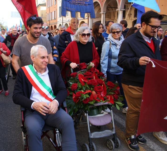 “Quella di oggi è una piazza molto bella, pacifica, decisa a respingere ogni rinascita del fascismo, decisa a ribadire le scelte, l’identità ed i valori dell’antifascismo”, ha detto il sindaco di Reggio Marco Massari, che ha partecipato al corteo in carrozzina dato l’intervento chirurgico al quale si è sottoposto di recente.