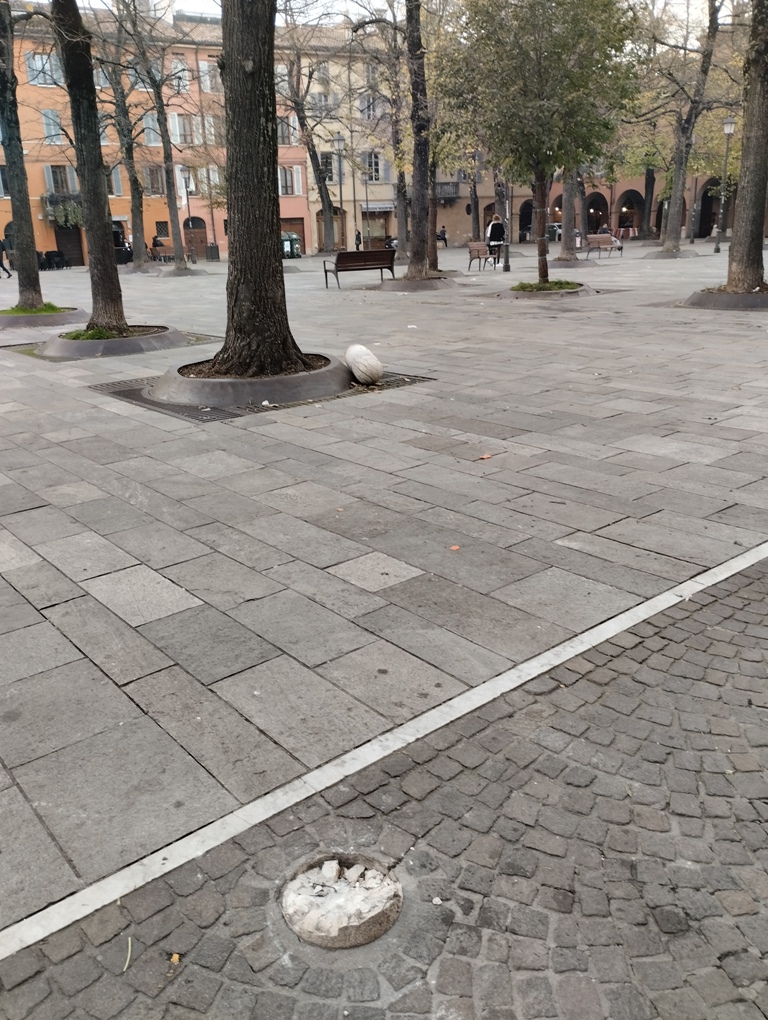 Come ci segnala un lettore, ancora un piletto spezzato e rimasto abbandonato a terra in piazza Fontanesi, nel cuore del centro storico di Reggio Emilia.
