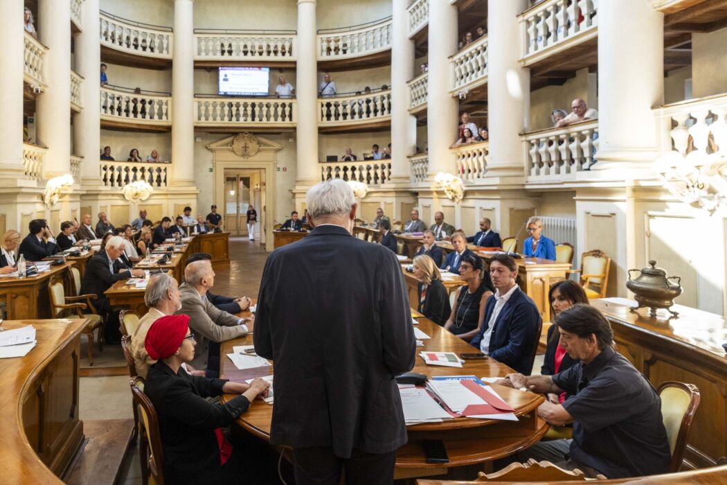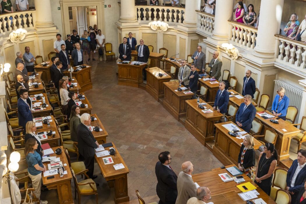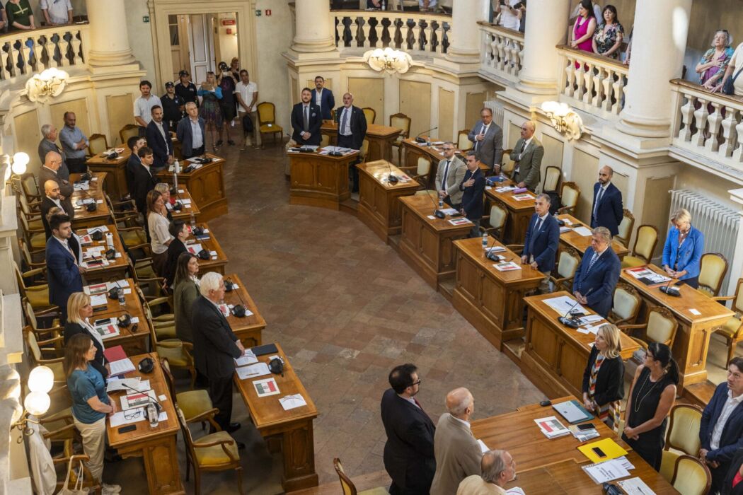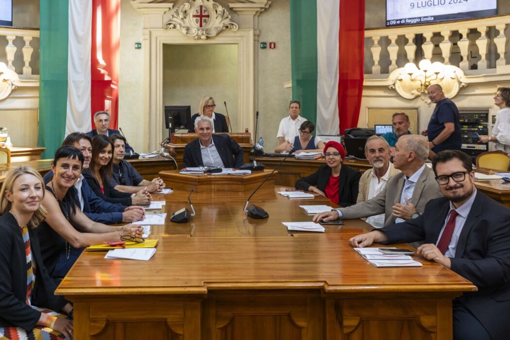 Debutto per il Consiglio comunale di Reggio Emilia in Sala del tricolore e prima seduta con il nuovo sindaco Marco Massari. I consiglieri, tutti presenti, si sono concessi le foto di rito e di gruppo.