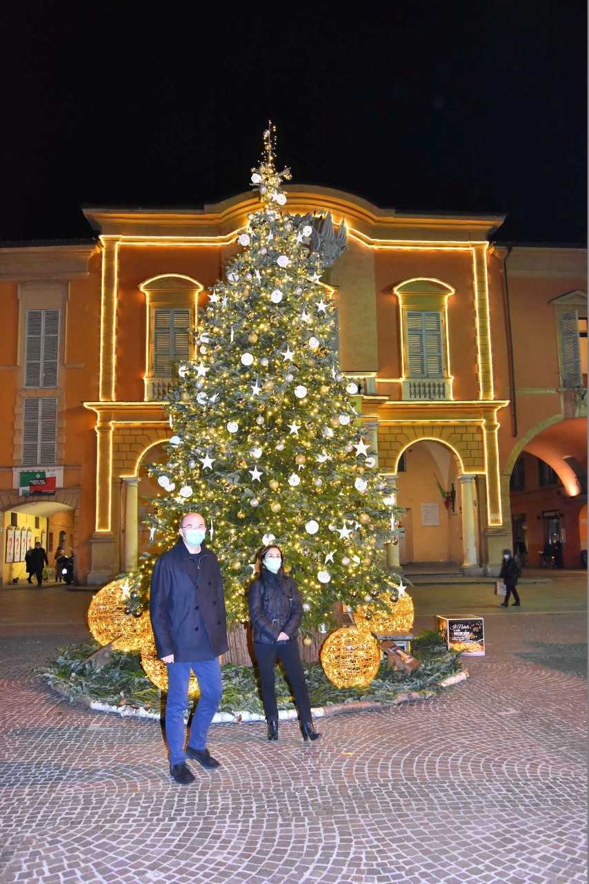 Brilla di luci l’abete ‘Camillo’, il grande Albero di Natale di Reggio Emilia. Stasera il sindaco Luca Vecchi e l’assessora a Commercio, Attività produttive e Valorizzazione del centro storico Mariafrancesca Sidoli hanno acceso gli impianti luminescenti che ornano la pianta, in piazza Prampolini, davanti al Municipio.