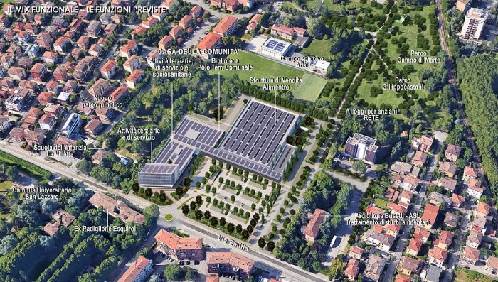 Tra gli altri elementi di particolare rilevanza introdotti nel progetto, dopo un lungo confronto con l’amministrazione comunale, figurano l’aumento di parcheggi interrati (e la conseguente riduzione di quelli in superficie); il potenziamento delle connessioni ciclo-pedonali per mille metri (inclusa la nuova superciclabile sulla via Emilia); l’introduzione di un monitoraggio ambientale prima, durante e anche dopo il completamento dell’intervento; il miglioramento dell’efficientamento energetico, potenziando fotovoltaico di copertura e prestazioni energetiche degli edifici e grazie a un’innovativa vernice che neutralizza alcuni inquinanti presenti nell’aria.