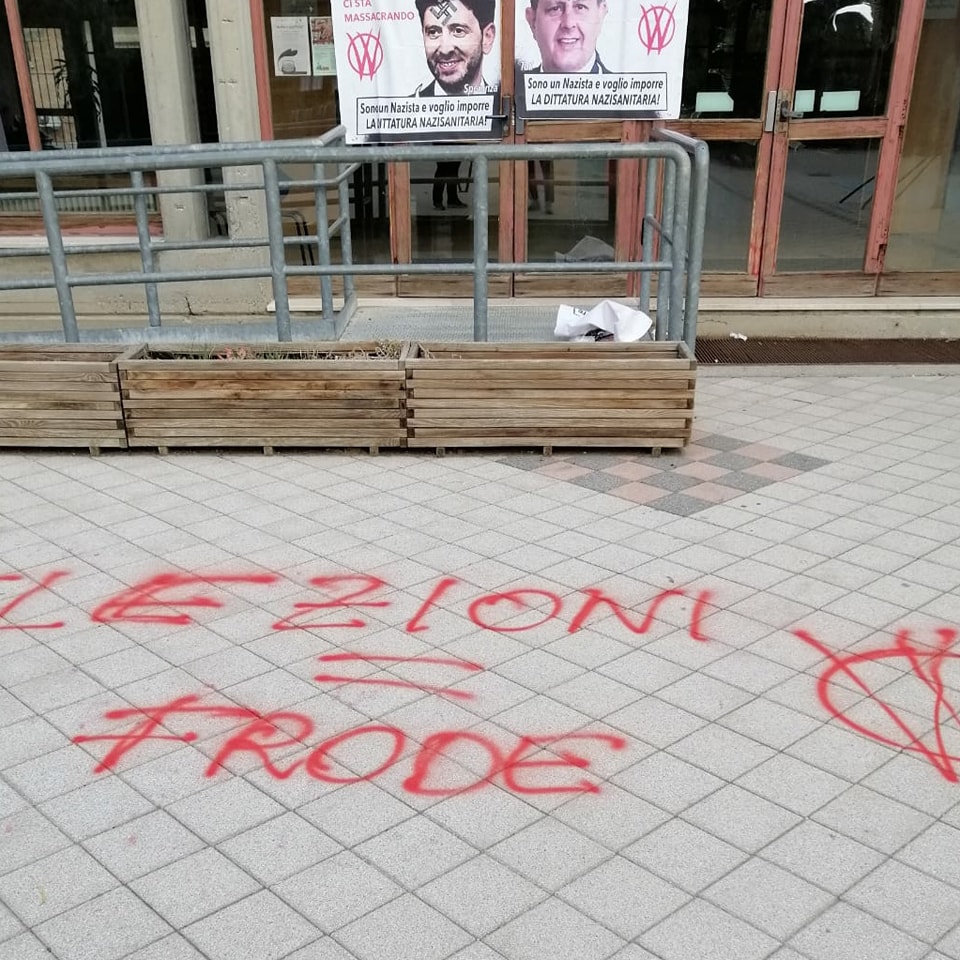 Nella notte la scuola primaria Calvino di Reggio Emilia, sede di seggio per le politiche di domenica, è stata vandalizzata con scritte sui manifesti elettorali e sul selciato.