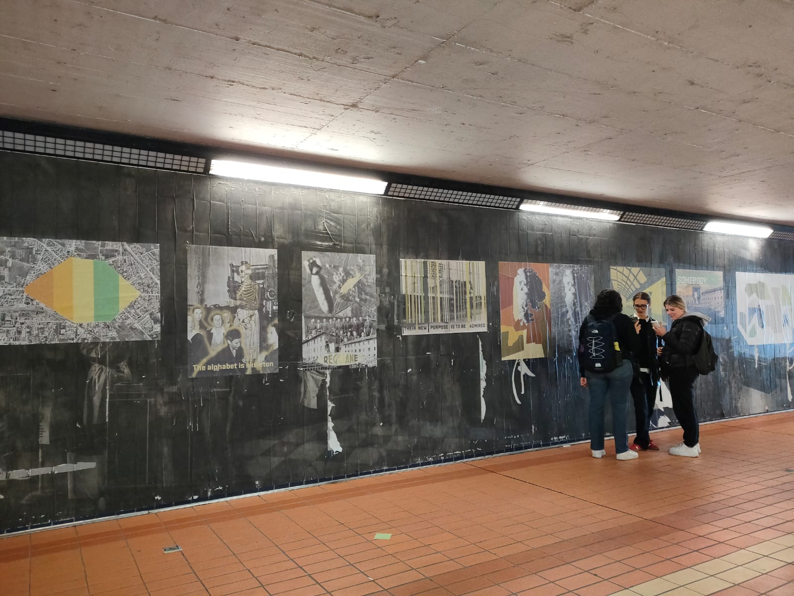 Guidati dai docenti: Stefano Bertini, Linda Fabbris, Morena Bertolani, Silvia La Ferrara, Daniela Santachiara e Arianna Lerussi, gli studenti del Chierici, con la possibilità offerta da Palazzo Magnani, con un progetto del ‘Piano estate’, hanno proseguito la riqualificazione del percorso dai chiostri di San Pietro, alla via Emilia, al sottopasso della stazione ferroviaria centrale, piazzale Europa, ex OMI (Officine meccaniche reggiane), fulcro della rigenerazione urbana, che ospita: la Fondazione Reggio Children, Remida, The Lego Foundation, il Centro Teatrale MaMiMò e una palestra di boxe. Gli studenti hanno scelto modalità e mezzi a loro più consoni, creando opere non permanenti, tanto importanti, quanto inducono l’osservazione, la riscoperta, la memoria dei luoghi in dialogo con la città. Sulle sfumature dei colori usati da David Tremlett per l’ex mangimificio, sono stati progettati, realizzati e installati: stencil, stickers, rivestimenti tessili, cartoline, frecce e cartelli in cartonlegno, manifesti con fotografie d’epoca rielaborate, provenienti dall’archivio del geostorico Antonio Canovi, utilizzando anche materiali del centro di riciclaggio Re Mida. Stefano Bertini referente del progetto dice: ”Gli studenti hanno lavorato interdisciplinarmente fra i dipartimenti, intersecando il lavoro scolastico con quello delle istituzioni cittadine”. Gli allievi: Fabio Ganapini e Adsaya Asokaratna commentano:”Siamo felici di questa collaborazione per la possibilità che abbiamo avuto di conoscere il passato, vivendo il presente e di unirlo al futuro”.