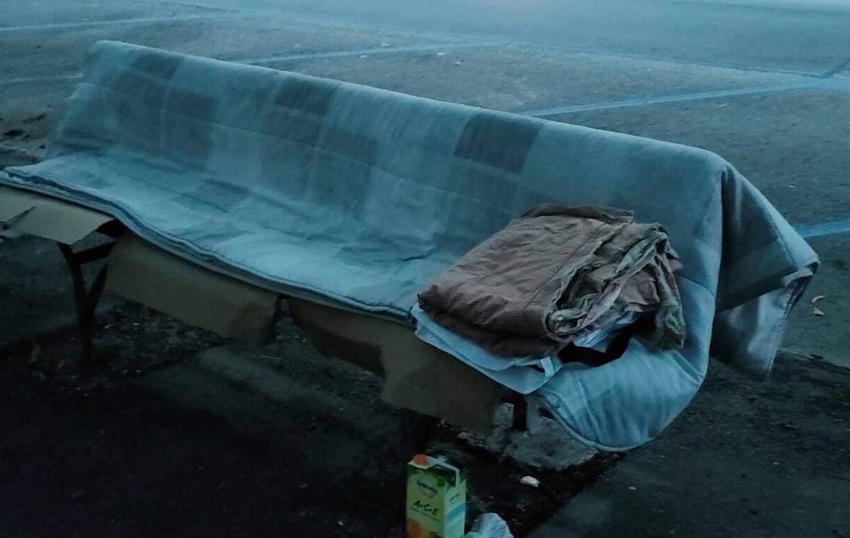 Qualche giorno fa nel parco pubblico vicino a casa mia, a Reggio, ho notato una sorta di passeggino per bambini pieno di borse e roba e altre cose e copertine sulla panchina disposte in modo ordinato, pulito e composto. A terra due ciotoline per l’acqua e del cibo per un cagnolino. Ieri sera tardi passando accanto alla stessa panchina ho visto la stessa roba e ho scorto le gambe di una persona ben nascosta e coperta. La panchina da qualche è diventata una casa. La casa di una persona povera. Ho pensato ad un barbone per scelta in transito e dopo una breve riflessione sulla vita ho proseguito la mia tranquilla passeggiata.