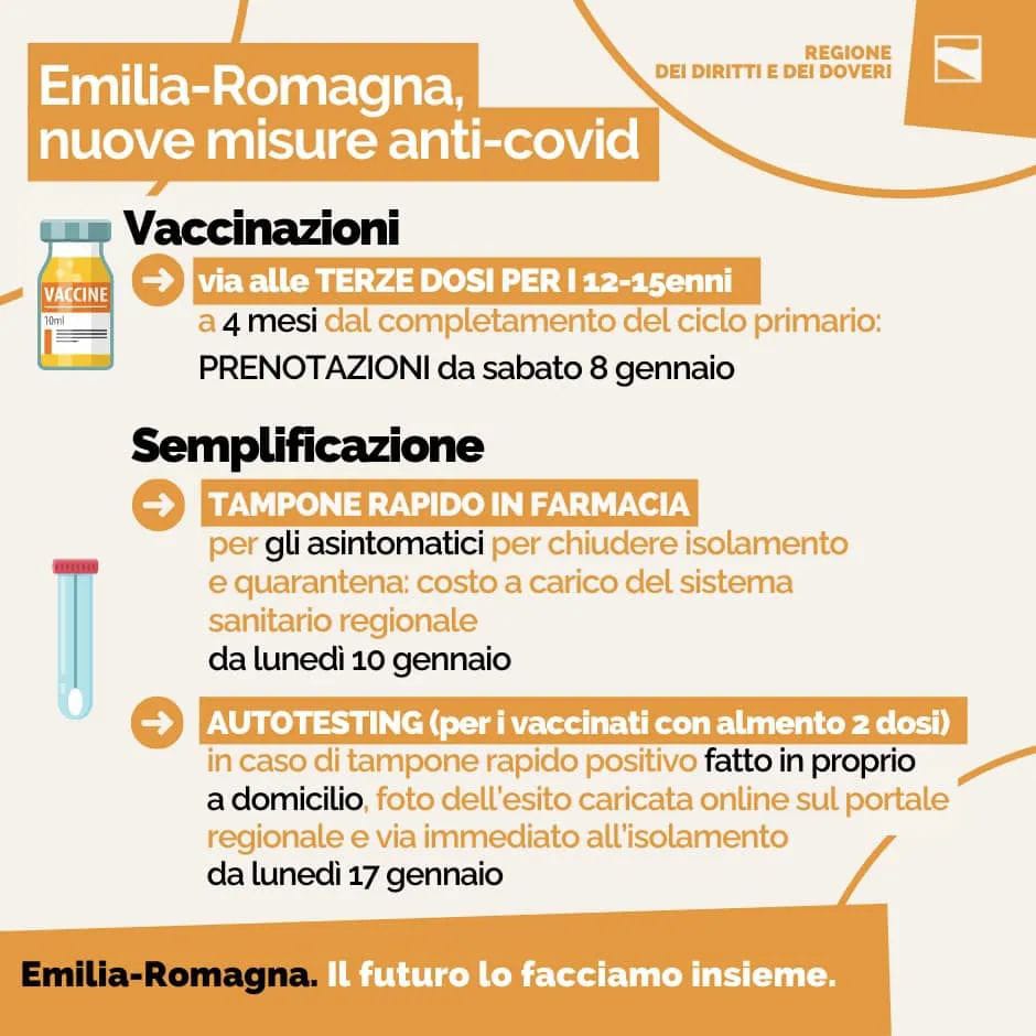 Da lunedì 17 gennaio sarà poi possibile effettuare un test antigenico nasale ‘fai da te’ a domicilio e caricare su un apposito sito della Regione Emilia-Romagna (il link verrà creato nei prossimi giorni) il risultato, avviando così in automatico il periodo di isolamento in caso di positività. Occorrerà avere attivato il Fascicolo sanitario elettronico e aver fatto almeno due dosi.