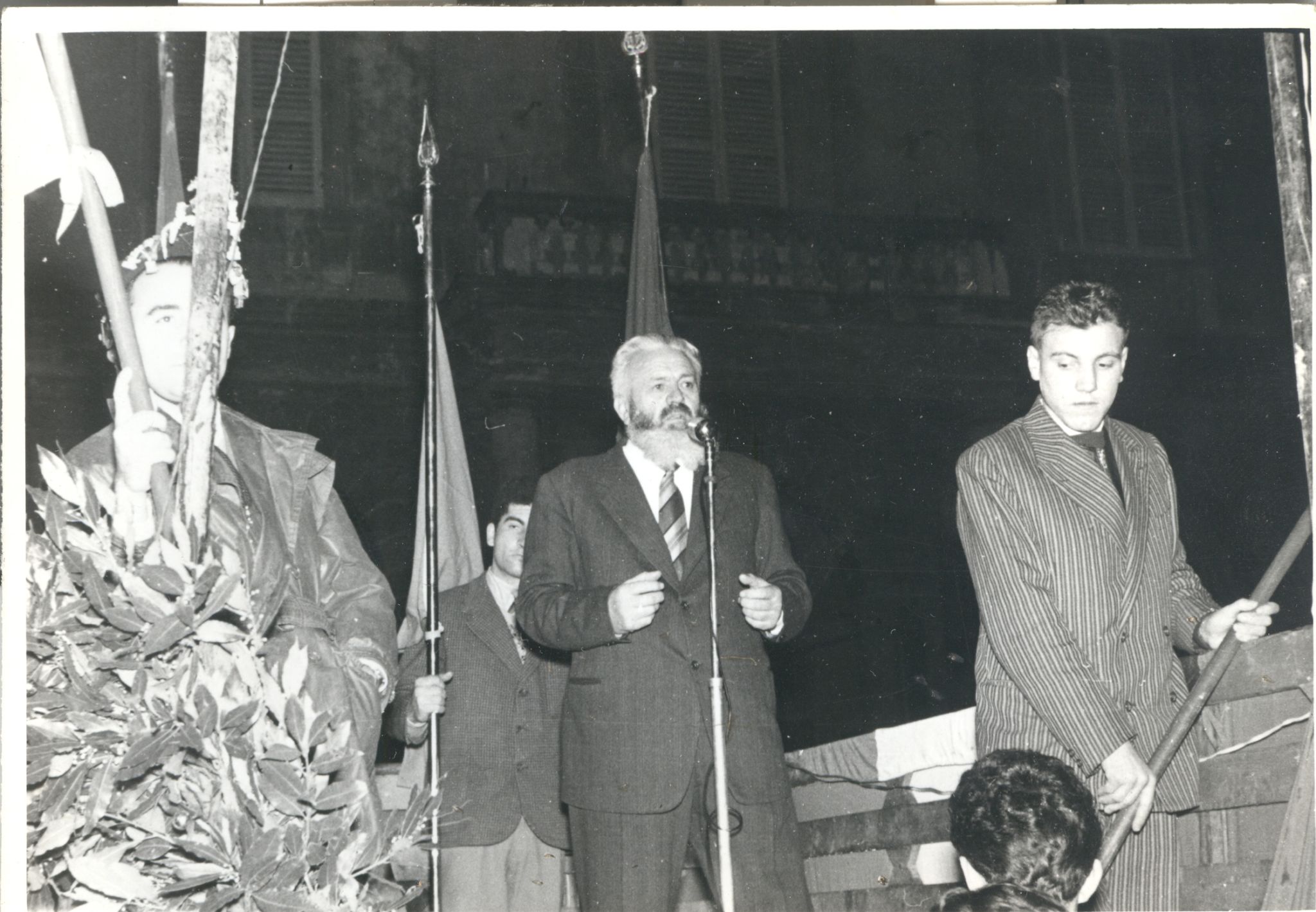 Comizio di Arrigo Nizzoli (Lino), segretario provinciale del Pci di Reggio Emilia e poi segretario amministrativo a Ferrara