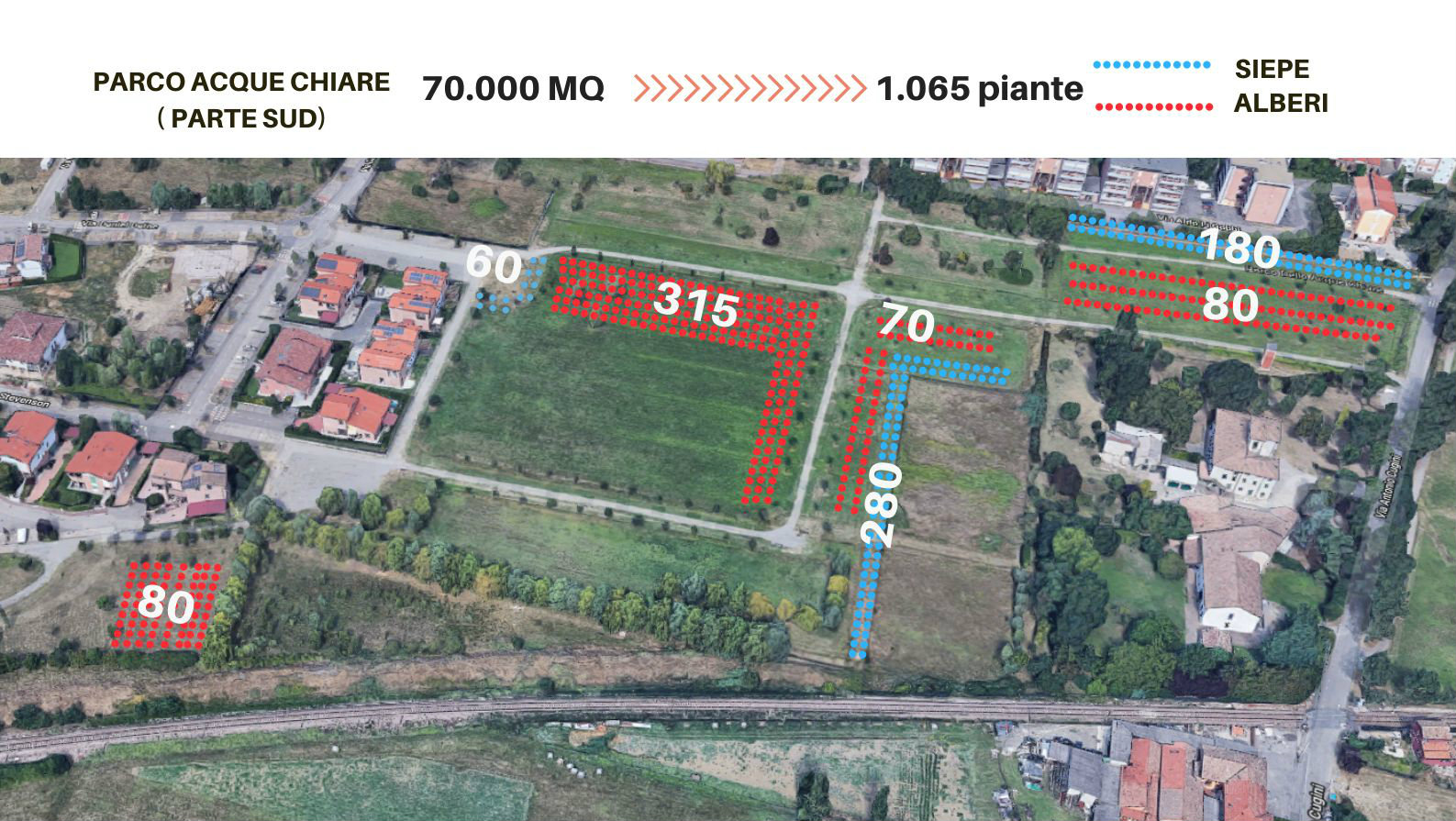 Dunque, 1.065 nuove essenze arbustive saranno messe a dimora al parco pubblico delle Acque Chiare domenica 17 novembre, durante un evento di piantumazione collettiva, promosso dall’Amministrazione comunale e dal Centro di Educazione Ambientale (Ceas), di cui fanno parte Legambiente e Wwf, con la collaborazione di volontari, associazioni e cittadini. Lo spirito della giornata è quello di un evento collettivo aperto alla cittadinanza tutta, in cui unire gli sforzi per aggiungere assieme un nuovo tassello al Piano di Forestazione Urbana promosso dal Comune.