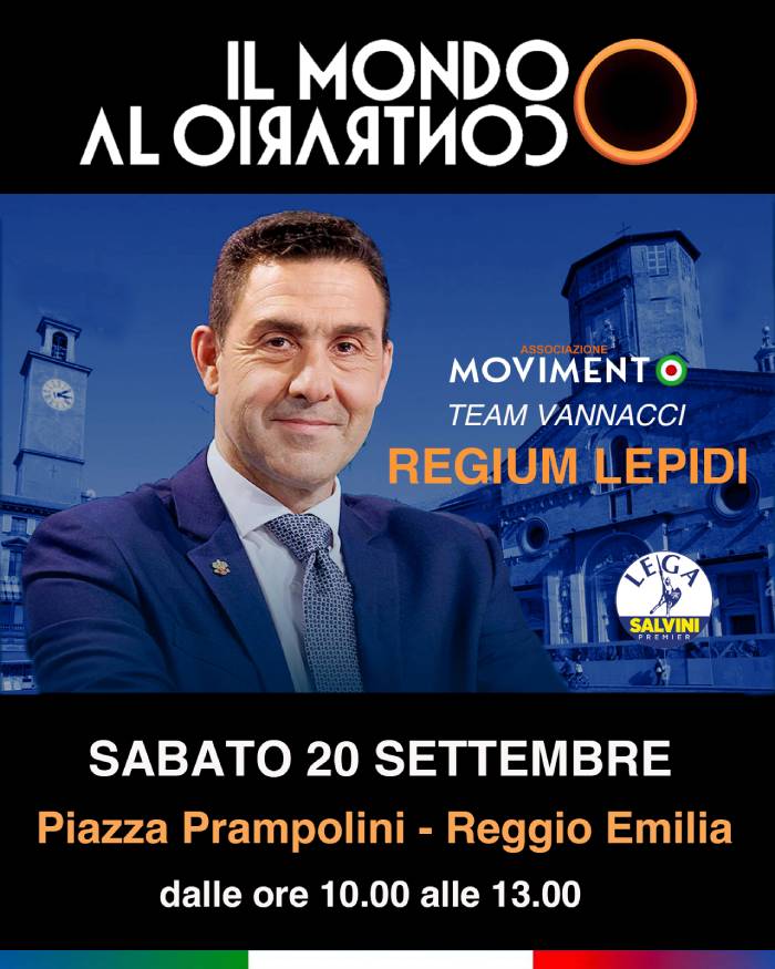 Sabato 20 settembre a Reggio sarà presentato ufficialmente il Team Vannacci Regium Lepidi, espressione provinciale del movimento “Il Mondo al Contrario” a sostegno dell’europarlamentare della Lega Roberto Vannacci.