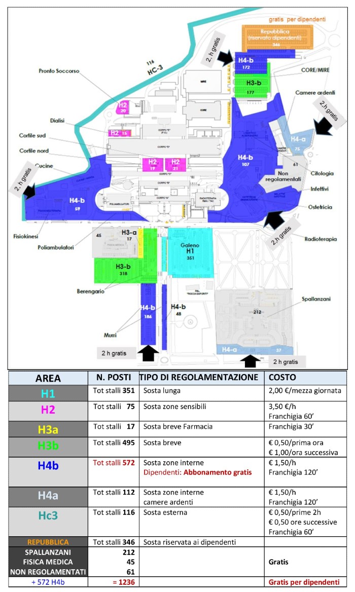 Contemporaneamente, nelle aree H4a e H4b saranno oltre 680 gli stalli a disposizione di pazienti e familiari nei quali si potrà parcheggiare gratuitamente sfruttando una franchigia della durata massima di due ore. Restano completamente gratuiti per tutti, invece, gli oltre 200 posti auto nell’area dello Spallanzani.