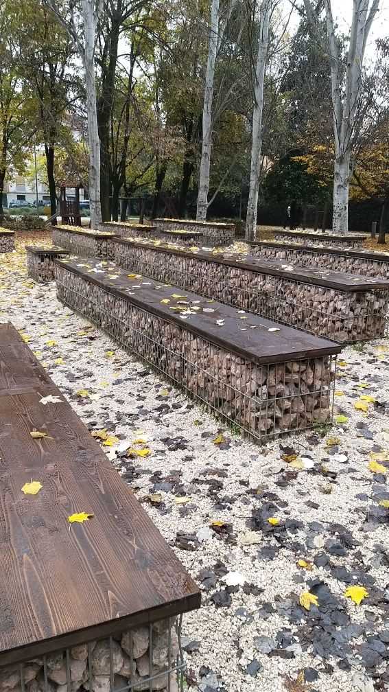 Le intemperie e il sole dell’estate, l’uso assai frequente, qualche danneggiamento volontario avevano messo in affanno queste silenziose, confidenziali presenze al parco del Polo e al parco Cervi. D’altra parte, come la tradizione e il gusto comandano, sono fatte di assi di legno imbullonate su telai in metallo di gusto ‘floreale’ (ricordano di solito rami di piante), il tutto rigorosamente verniciato di verde oppure, nei casi più contemporanei, sono sedute in legno poggianti su blocchi di pietre ingabbiate. Legno e vernice, è noto, non sono eterni.