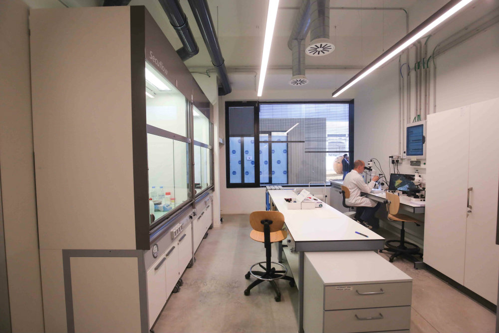 Gli spazi ad alta tecnologia dei laboratori sono stati realizzati mediante la giustapposizione di blocchi in legno, introducendo flessibilità e reversibilità degli spazi: una soluzione già adottata in precedenza per l’adiacente Capannone 19, oggi sede del Tecnopolo cittadino.