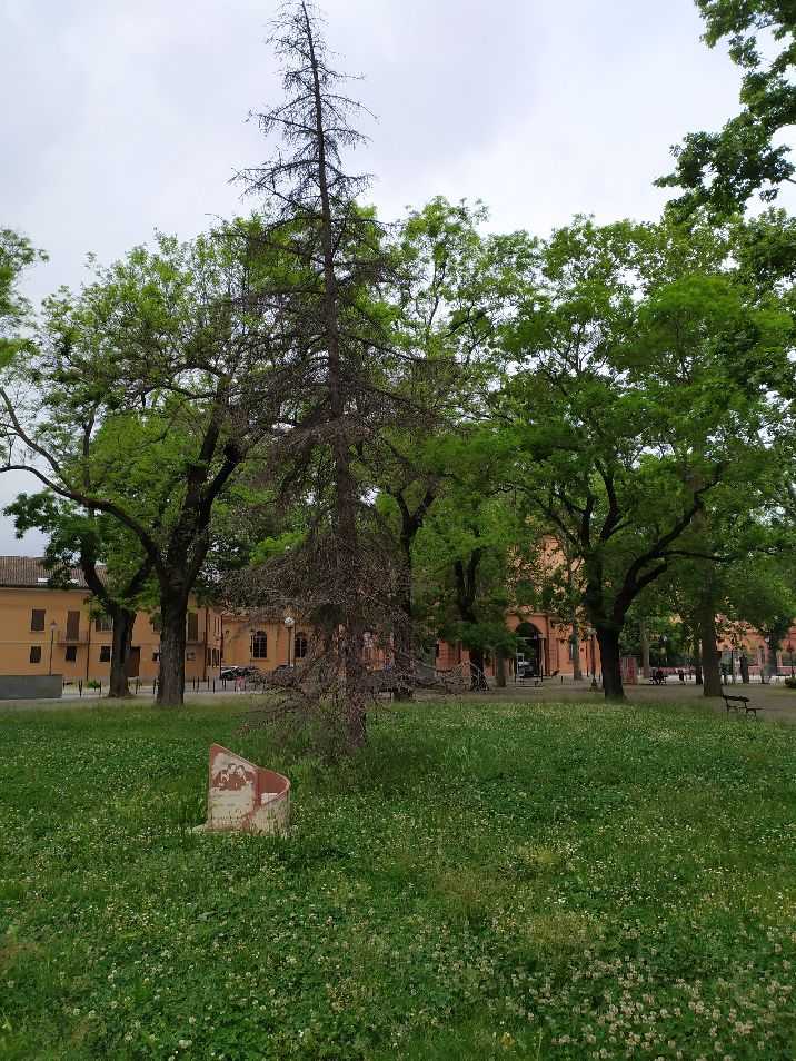 Da segnale l’agonia di un Acero negundo in viale Isonzo, a ridosso dl Piazza Duca d ‘Aosta e la morte dell’Abete del Colorado ai Giardini pubblici, dedicato anni fa a Falcone e Borsellino; quest’ultimo è deceduto da tempo e non è mai stato tolto e sostituito. (foto 6 e 7)