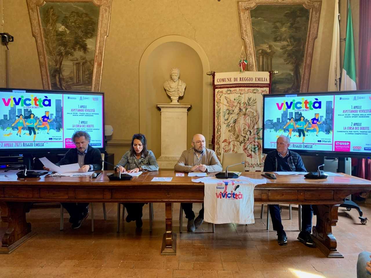Il programma e le novità dell’edizione reggiana di Vivicittà, sabato 1 e domenica 2 aprile in città, è stata presentata in Municipio con l’Assessora Raffaella Curioni, Mauro Rozzi della Fondazione per lo Sport e Azio Minardi, presidente di Uisp Reggio Emilia in compagnia degli sponsor che supportano l’evento promosso e organizzato da Uisp con il sostegno nazionale del broker assicurativo Marsh.