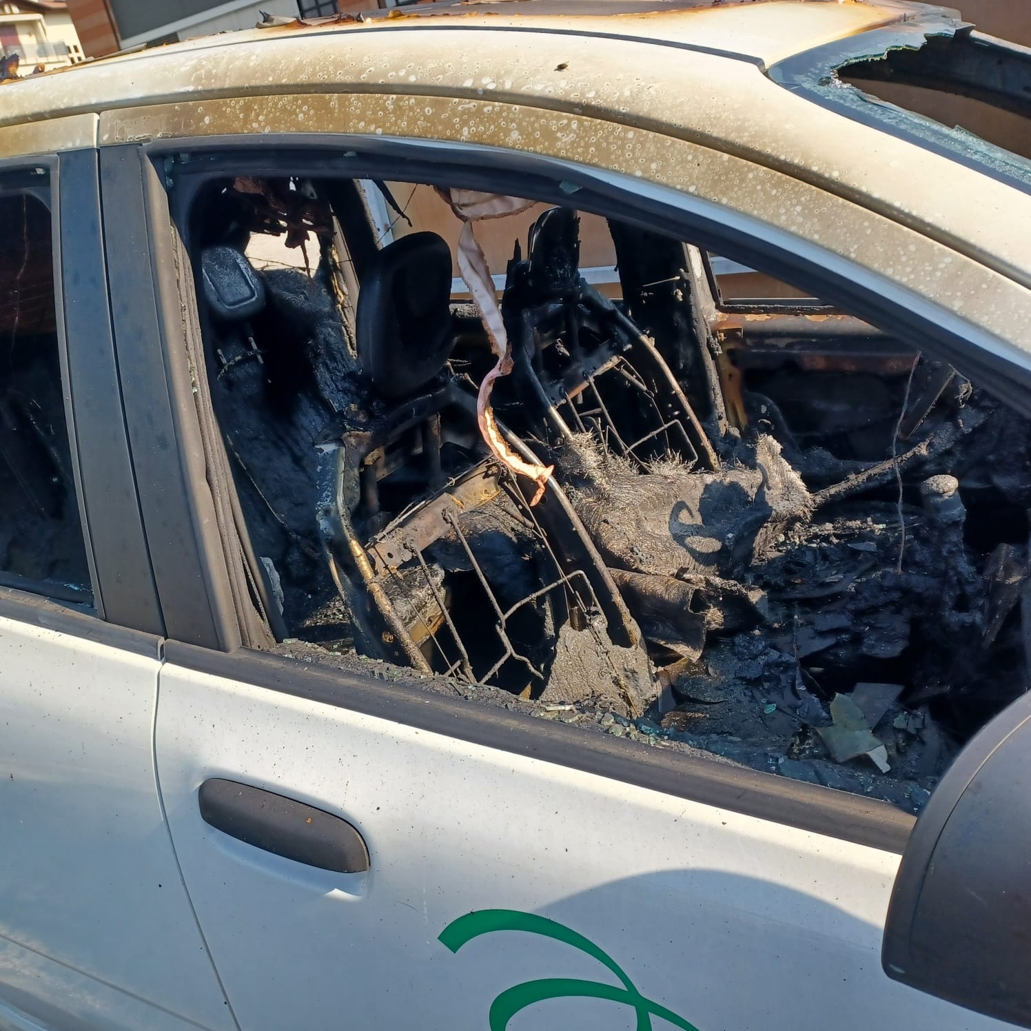 Al di là del mezzo andato completamente distrutto, dalle fiamme è stato lambito, come si diceva, un Fiat Qubo Auser, che, fortunatamente ha riportato danni lievi poiché “schermato” dalla Fiat Panda.
