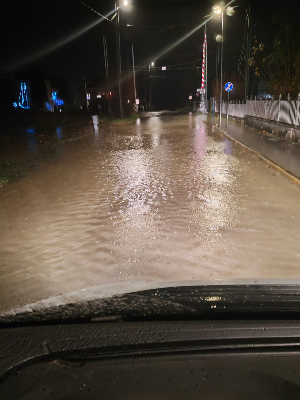 Situazione di allagamento al passaggio a livello di Bosco, che ha causato l’interruzione della circolazione ferroviaria.