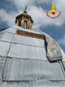 Il santuario della Beata Vergine del Castello, su una piccola altura nel centro del comune di Fiorano Modenese, è chiuso da venerdì 15 a seguito del distacco delle lamiere in piombo che fungono da copertura della cupola. I vigili del fuoco di Sassuolo sono infatti intervenuti con il supporto dell’autoscala di Modena e, dopo alcune ore di lavoro, sono riusciti a rimuovere la lastra di piombo del peso di circa 200 chili dalla cupola centrale.