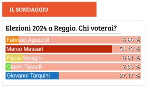 Si è chiuso alle 16.30 di oggi il secondo ‘sondaggio’ tra i lettori di 24Emilia sulle prossime elezioni amministrative a Reggio Emilia. Confermato l’esito del precedente sondaggio con 4 soli candidati (Gianni Tasselli non si era ancora presentato), con il candidato del centrosinistra indicato dal Pd, Marco Massari, che si aggiudicherebbe la vittoria al primo turno: tra i nostri lettori il medico infettivologo ha infatti ottenuto il 54,13% dei consensi, in aumento rispetto al 51,47% di un mese fa.  L’ingresso del candidato sostenuto da Rifondazione comunista ha dunque sottratto consensi all’ex consigliera del Movimento 5 stelle Paola Soragni, che scende dal 14,13% di fine marzo all’attuale 8,91%, e a Fabrizio Aguzzoli di Coalizione civica, cha dal 9,6% arretra al 7%. Seconda forza rimane saldamente il candidato civico del centrodestra Giovanni Tarquini, che dal 24,8% sale al 27,17%.