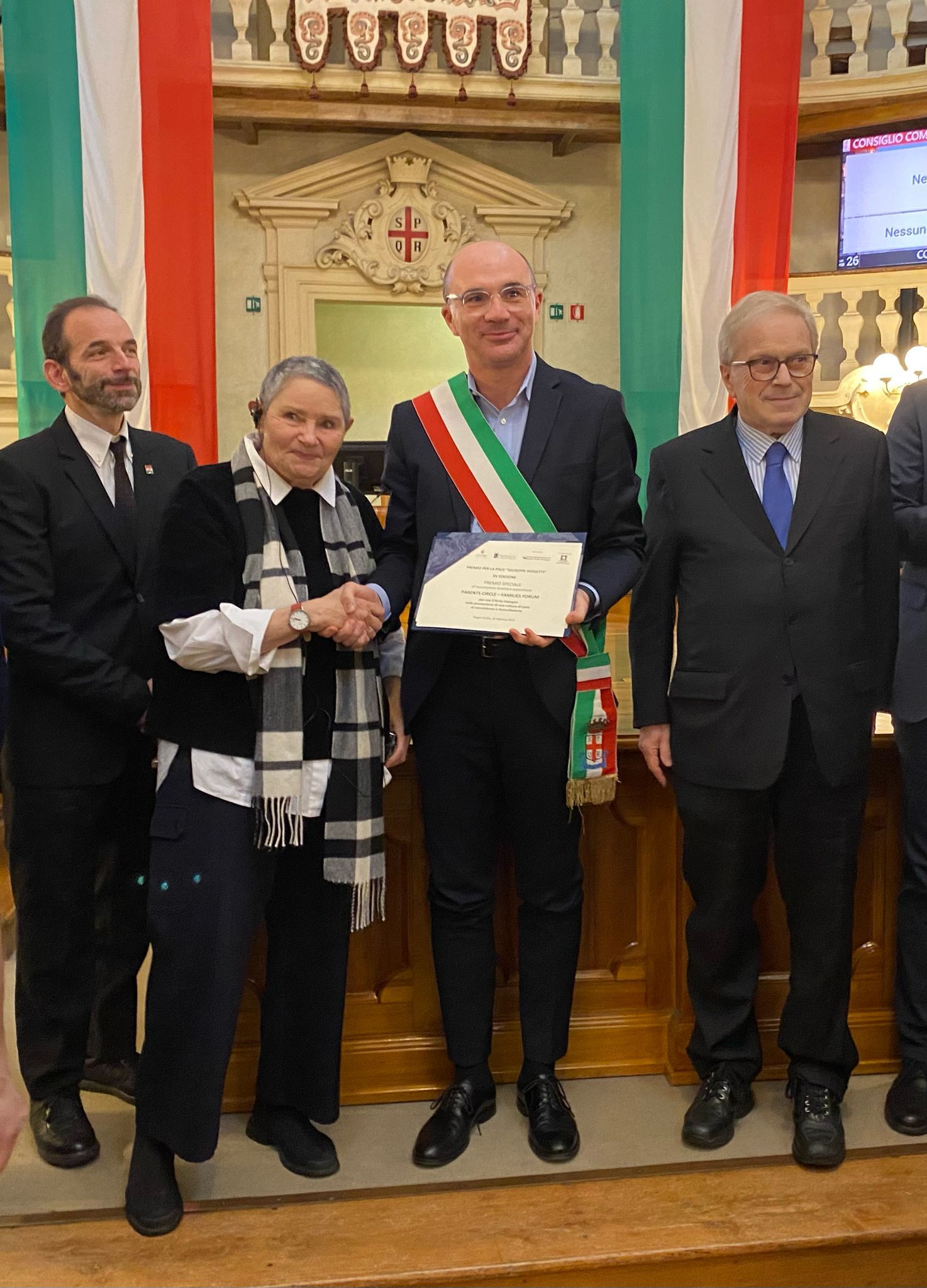 Il riconoscimento è stato conferito dal sindaco Vecchi e dal presidente Castagnetti, insieme al presidente del Consiglio comunale Matteo Iori, all’assessore al Welfare e Politiche per i migranti Daniele Marchi e ai capigruppo del Consiglio stesso. Erano presenti anche i membri della Giuria del Premio, Chiara Piacentini e Palo Burani.