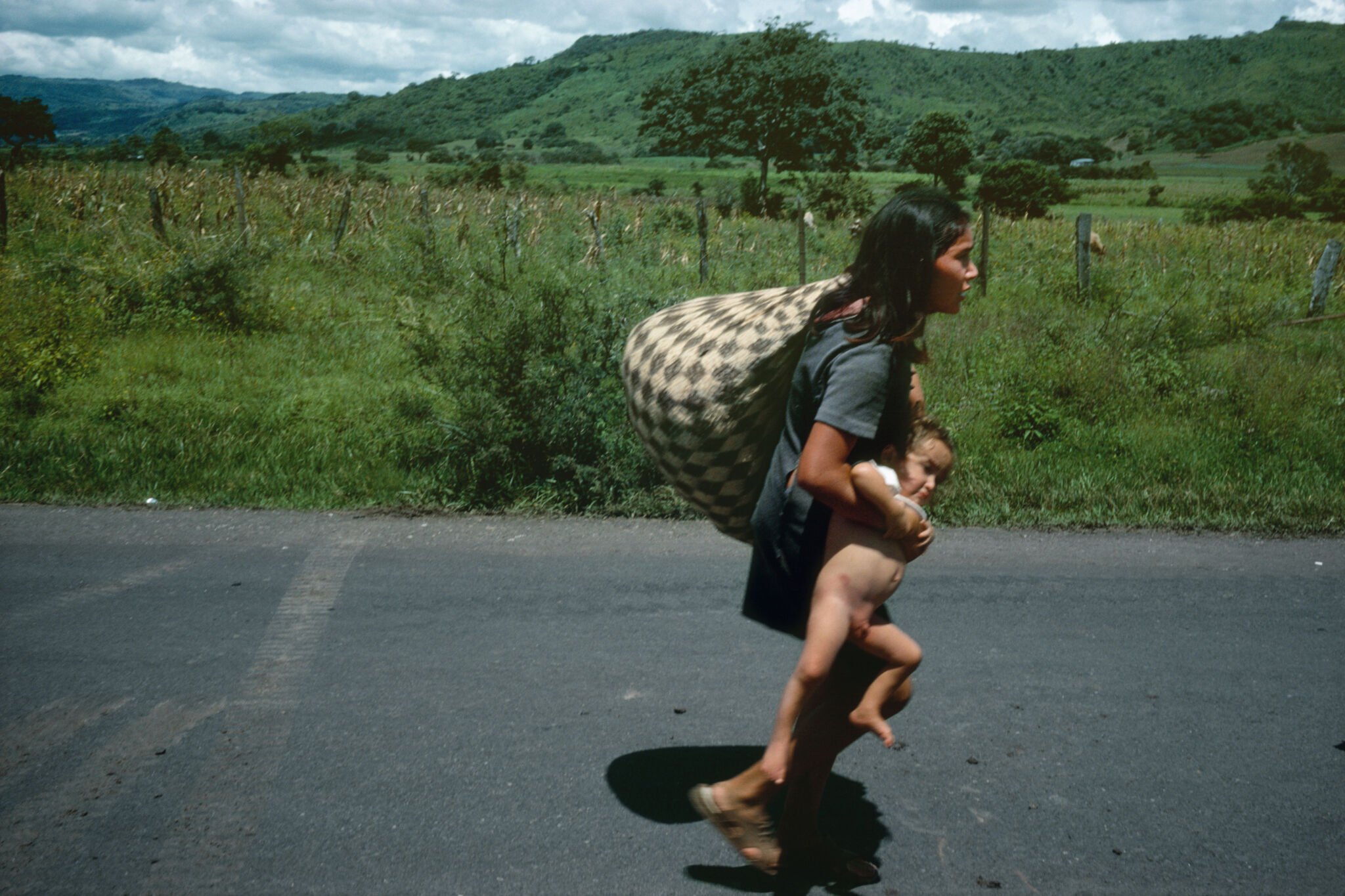 NICARAGUA. Esteli. September 20, 1978. Fleeing the bombing to seek refuge outside of Esteli. The Nicaraguan National Guard captured the city of Esteli which was held by Sandinesta rebels.
