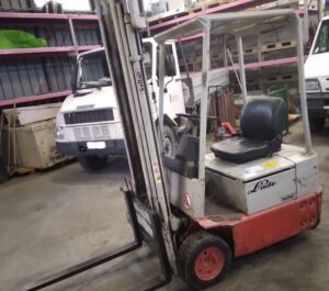 un carrello elevatore Linde E12 elettrico del 2011 portata 1.200 kg, funzionante, attualmente non utilizzato, ma custodito al chiuso, dotato di caricabatterie, da revisionare: 2.500 euro;