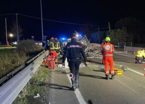 Altre due autovetture sono state colpite dai componenti d’acciaio: una Bmw con il conducente rimasto illeso e una Peugeot 208 con a bordo 4 persone rimaste lievemente ferite. Le immediate ricerche dell’autocarro pirata condotte dai carabinieri di Guastalla, anche attraverso l’analisi dei video dei varchi elettronici e relativi accertamenti, hanno permesso di localizzare l’autocarro pirata e rintracciare il fuggitivo. Sul posto sono intervenuti anche personale medico del 118 e i vigili del fuoco. Le salme dei due giovani sono state poste a disposizione della Procura di Reggio Emilia e l’autocarro sequestrato.