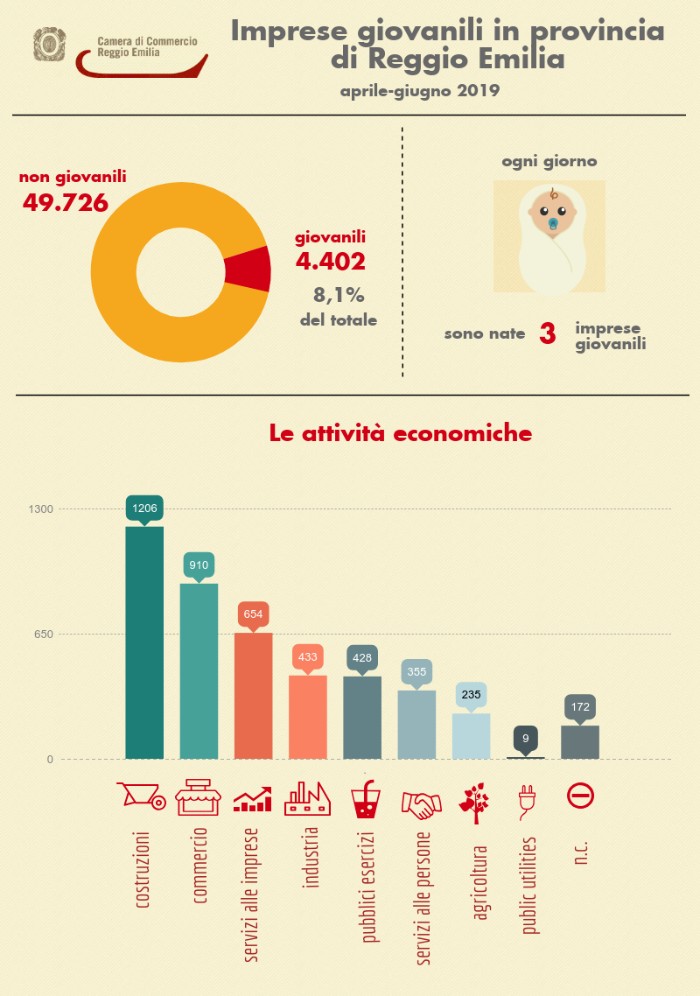 Lo scenario economico di questa estate 2019, in provincia di Reggio, sta facendo emergere come grandi protagonisti i giovani, che stanno cercano di creare opportunità di lavoro dando corpo alle proprie idee diventando imprenditori: tra aprile e giugno, infatti, le nuove imprese aperte da persone con meno di 35 anni di età sono state 256, quasi tre al giorno, pari a un terzo di tutte le aperture di nuove imprese nel trimestre preso in considerazione.