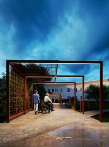 Sarà anche attrezzato per favorire la riabilitazione motoria, con un tappeto erboso sul quale camminare o sdraiarsi e con un’area per la pratica del giardinaggio che, è stato dimostrato, consente ai pazienti di migliorare il senso di orientamento, la manualità e la coordinazione motoria, ma anche aumentare il senso di responsabilità combattendo quello di inutilità. Prevista anche la possibilità di aggiungere un’area deputata alla coltivazione di piante ortive ed erbe