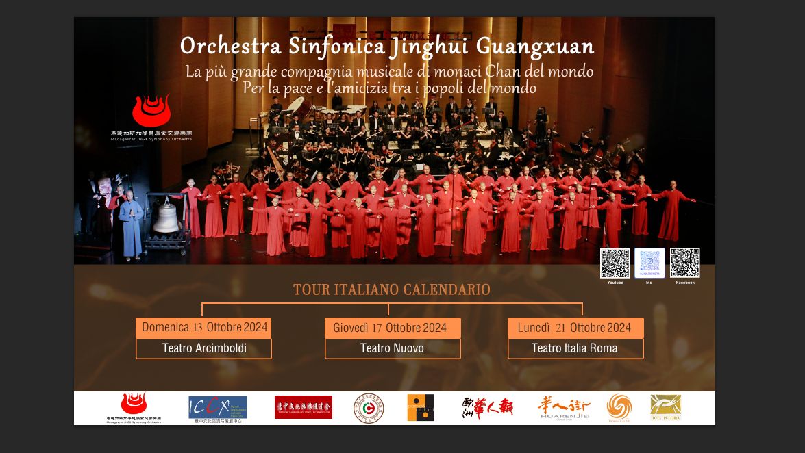 Arriva in Italia, per la prima volta live, la più grande compagnia musicale di monaci Chan del mondo, l’Orchestra Sinfonica Jinghui Guangxuan -intitolata ai maestri buddisti Jinghui e Guangxuan; l’unica orchestra al mondo composta da monaci Zen – diretta dal Maestro Shi Wule che abbiamo incontrato dal vivo a poche ore dalla “prima”.