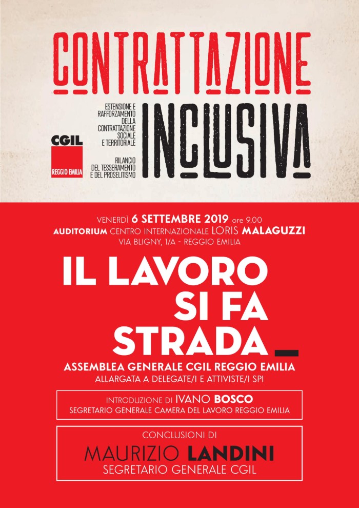 Venerdì 6 settembre a partire dalle 9.30 l’auditorium del Centro internazionale Loris Malaguzzi di Reggio ospiterà l’iniziativa dal titolo “Il lavoro si fa strada”, organizzata dalla Camera del lavoro di Reggio, che ha convocato l’assemblea generale dell’organizzazione sindacale allargata a delegati e attivisti dello Spi Spi.