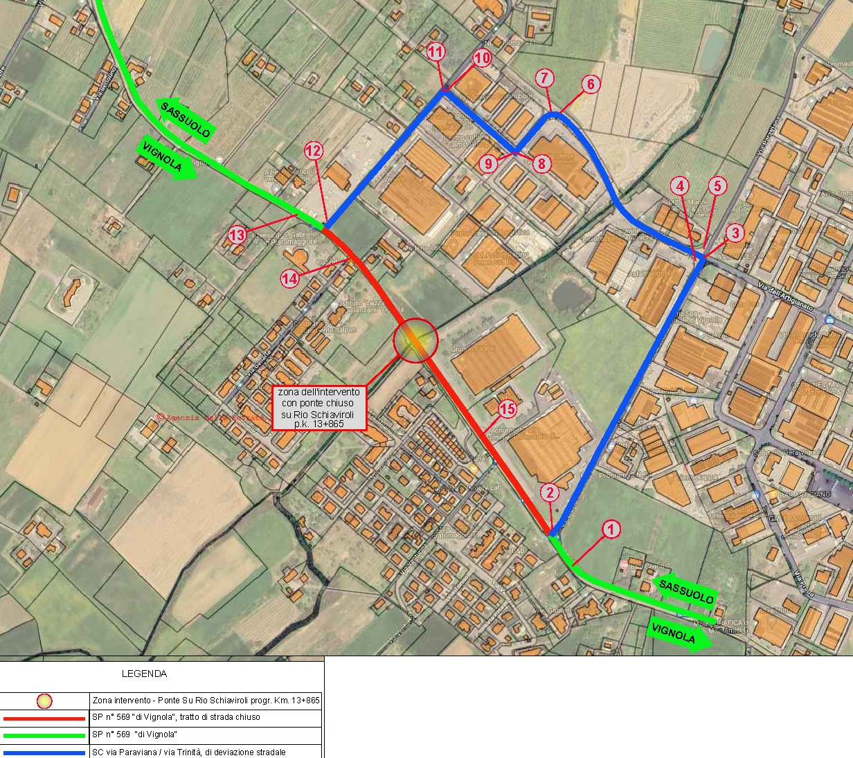 Per ridurre i disagi al transito è istituita la segnaletica con le indicazioni di viabilità alternativa, che sarà deviata nell’adiacente zona artigianale comportando un allungamento complessivo del percorso di un chilometro.